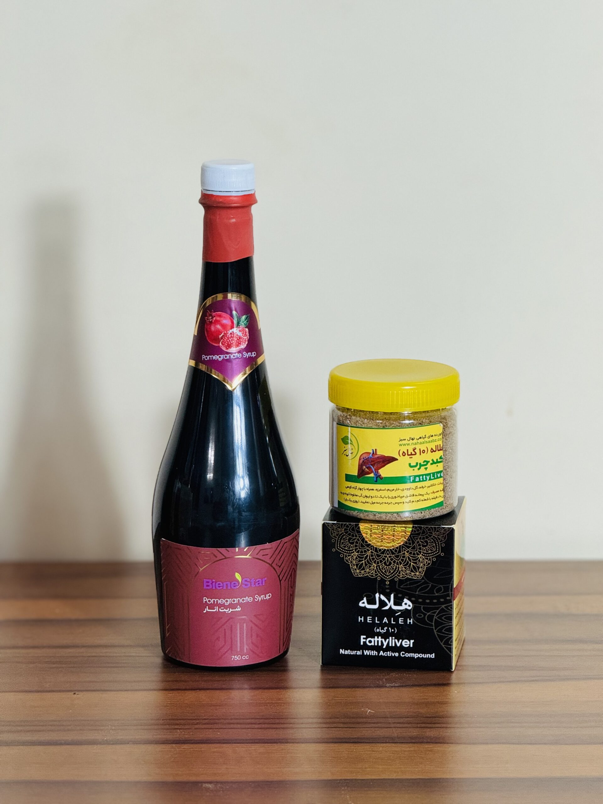 پک پاکسازی کبد شامل انارانگبین ، دمنوش ده گیاه هلاله این پک به رفع کبدچرب و علائم ناشی از آن مثل خستگی،تلخی دهان،دردساق پا و داغی کف پا کمک میکند. توصیه: پیشنهاد میشود این پک همراه سیرسیاه و عسل مصرف شود.